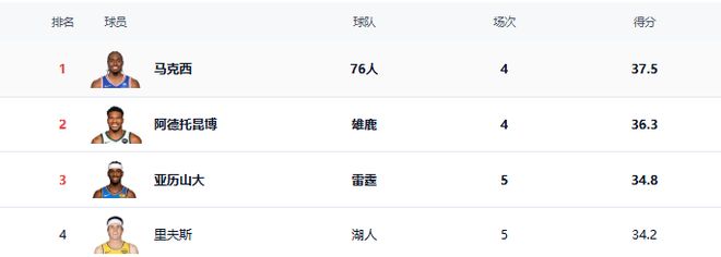 得分榜排名第四